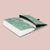 Binding: hardcase section sewn with elastic band closing + pen loop