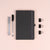 Practical lined notebook in trendy grey with professional finish, elastic closure and pencil loop.